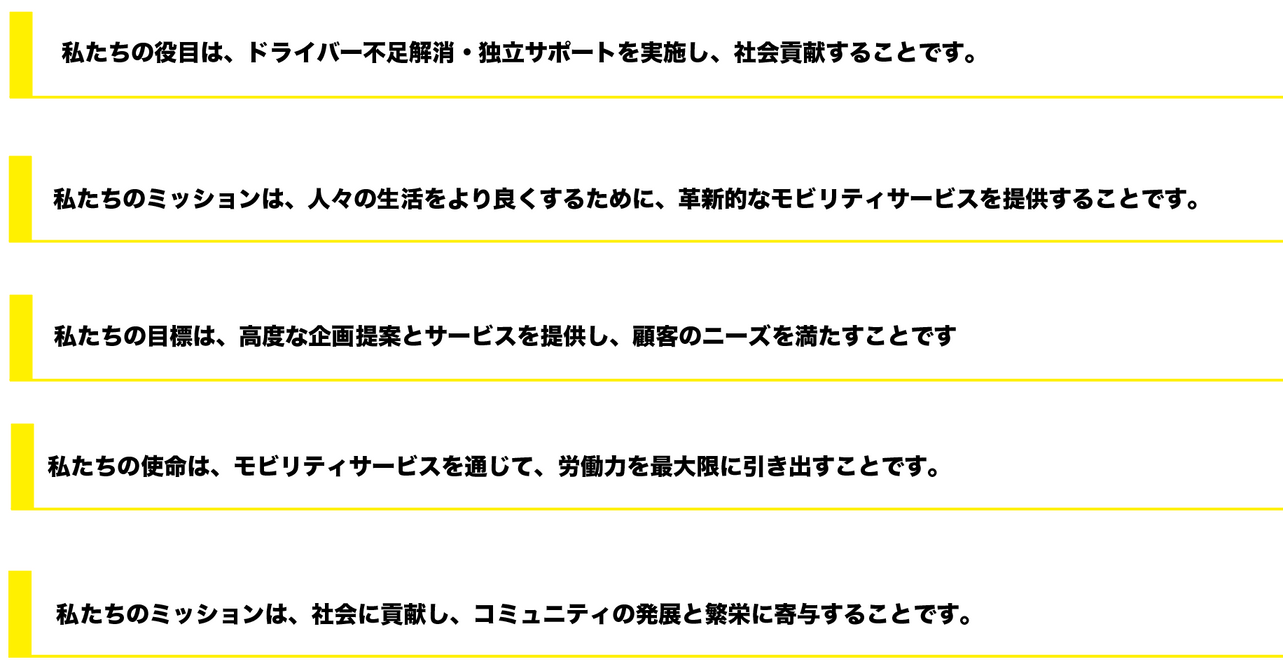 私たちの役目は、ドライバー不足解消・独立サポートを実施し、社会貢献することです。